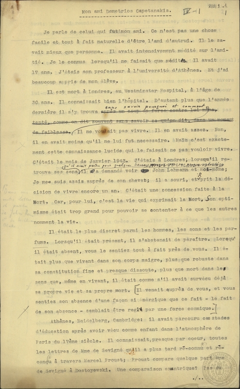 American School of Classical Studies at Athens, Demetrios Capetanakis - Κείμενα άλλων για το Δημήτριο Καπετανάκη Photographic Collection