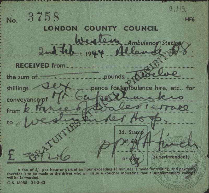 : "LONDON COUNTY COUNCIL Western Ambulance Station 2nd Feb 1944"