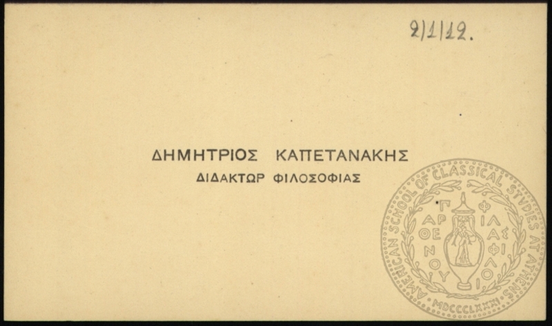 American School of Classical Studies at Athens, Demetrios Capetanakis - Προσωπικά αντικείμενα Photographic Collection