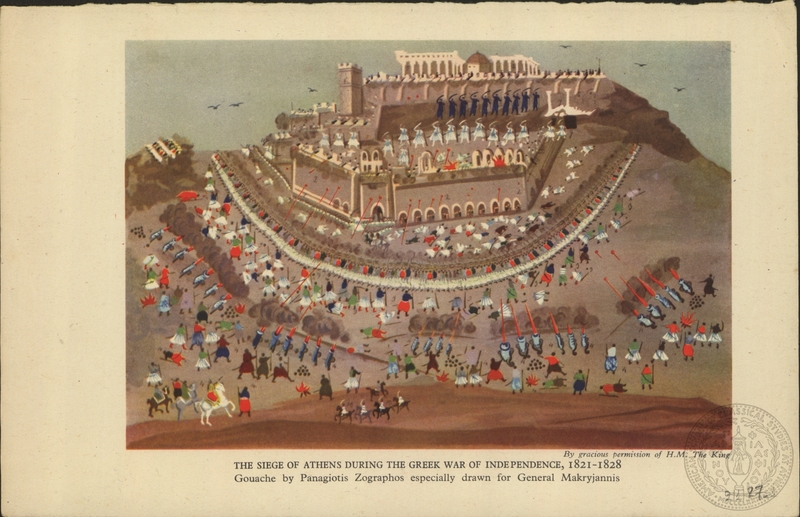 Description: "The siege of Athens during the greek war of independence 1821-1828, GOuache by Panagiotis Zographos especially drawn for the General Makryjiannis
