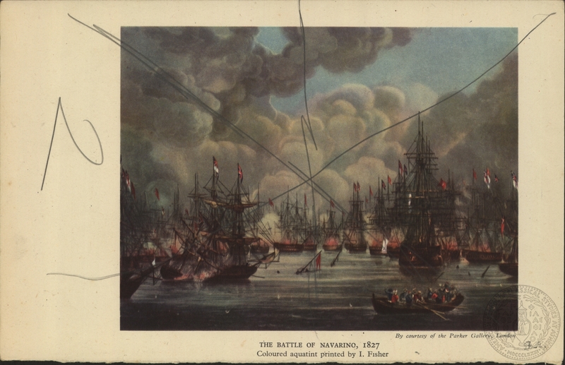 The battle of Navarino 1827, coloured aquatint printed by I. Fisher"