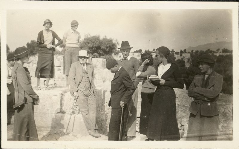 Description: "M.E., Mrs. Morgan, Lil, Winifred, Oscar, Mr. Lo, Dick, Dina, Dorothy, Mrs. Means. Oscar really is a pleasant individual tho' he will scowl in pictures."