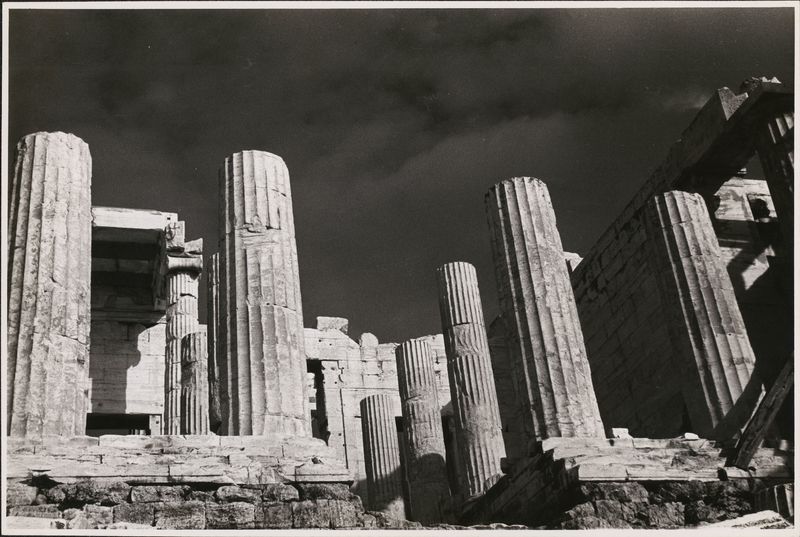: "Athens Akropolis Propylaia (grand gateway, built by Pericles) Alison Frantz Athens 47-5.5-34, "On the back ""Alison Frantz Athens 47-5.5-34""""