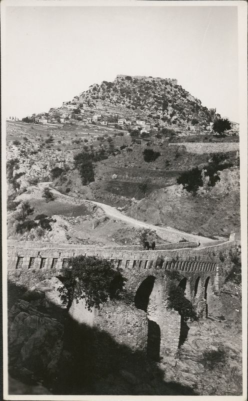 Description: "An interesting view of Corytna & the mediaeval bridge leading to it. We climbed to the top of the hill above the village. Please seve all these pictures!"