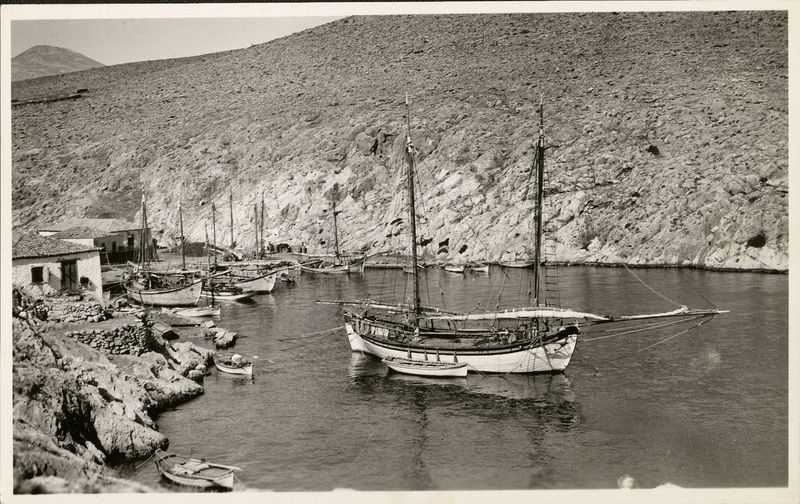 : "Cove with fishing boats moored"