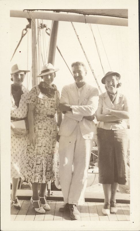 Description: "Alison, Lucy, Rodney, me Left to right: Alison Frantz Lucy Talcott Rodney Young Constance Curry (Barham) 1934/5 238, "On the back ""238""""