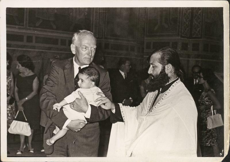 : "R.H.H. Baptizing the Lekkas grand-child ca. 1951 14, "On the back ""14""""