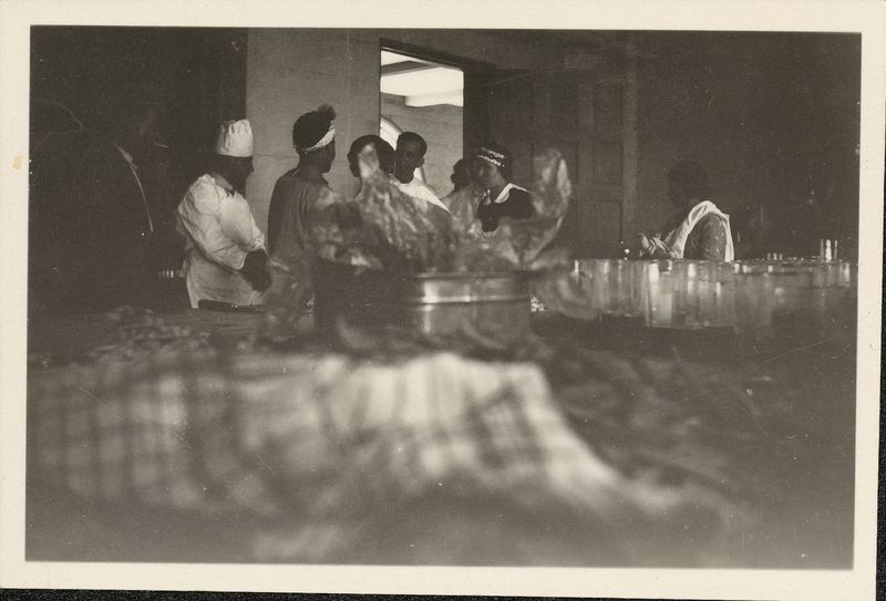 : "Scene in the pantry during the serving of the Lunch to the hungry mob. Various cooks & maids 00, "On the back ""00""""