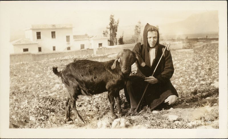 : "Greek goat-herd & goat = Joe Shelley 1933-34 A42, "On the back ""A42""""