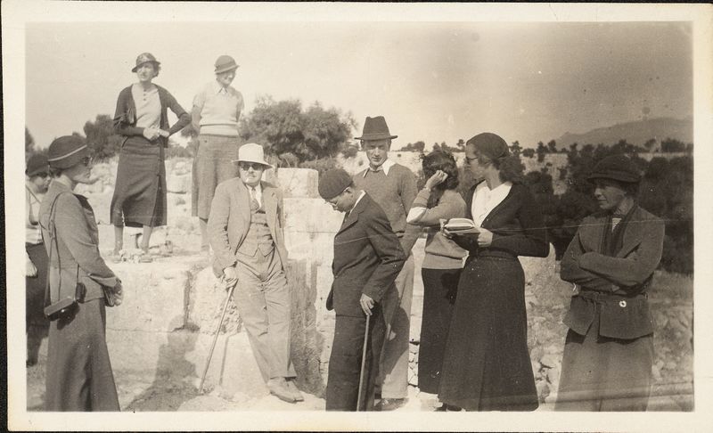 Title: "ASCSA trip. Mary Elizabeth Barton, Janet Morgan, Lillian Libman, Winifred Rutter, Oscar Broneer, Mao Te Lo, Richard H. Howland, Constance Gavares, Dorothy Traquair, and Mrs. Means"