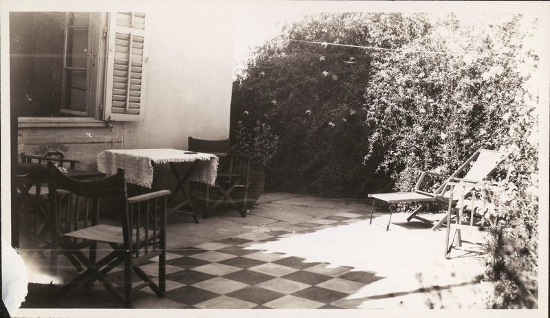 : "Coutyard of 31 Speusippou St. where Rodney Young + RHH lived 1935-37 Athens"