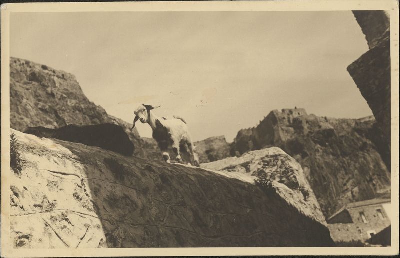 : "Monemvasia goat on a stone wall"