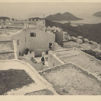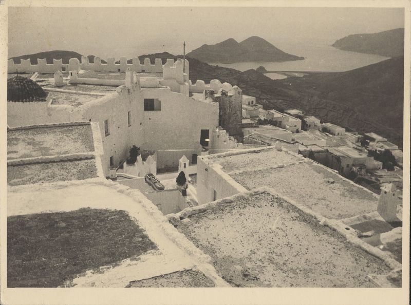 : "Patmos 1937 N(?) of Monastery -ETHNOGEOGRAPHIC BOARD SMITHSONIAN BUILDING WASHINGTON D.C., Written on back"
