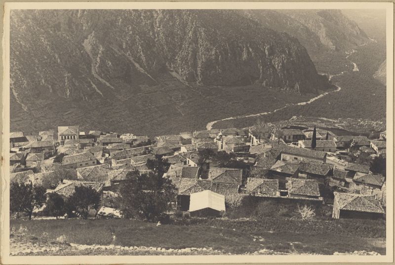 : "Delphi -looking down on the town- Janet Morgan Snell House Amherst Mass, On cardboard. Written on back"