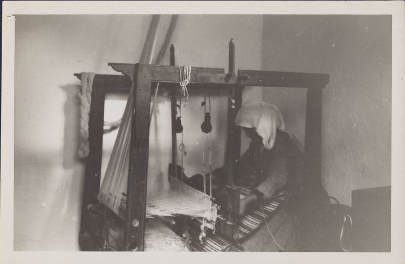 : "Woman working the loom"