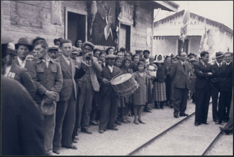 People waiting to greet King George II. Perigiali Station, Corinthia