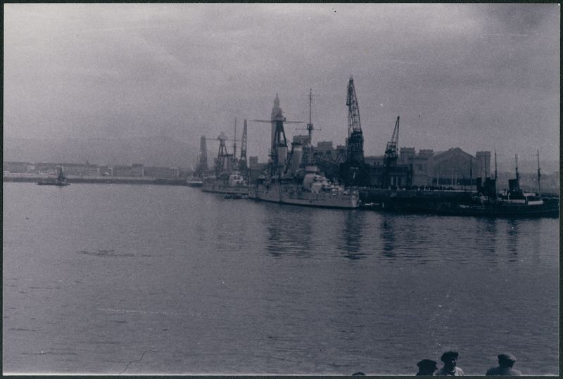 Battleship in the harbour of Peiraeus Near the custom house