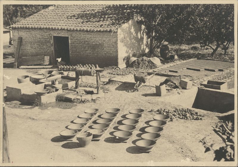 : "Figure 3. Yard of Amaro [ ] Pottery, showing well, vato, Drying floors, anad unbaked vessels Jane [ ], Written on back"