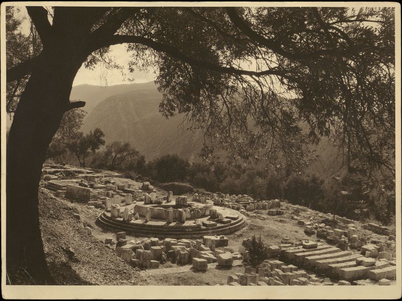 : "Greece, Phocis, Delphi, Delphi, Temple of Athena Pronaia"