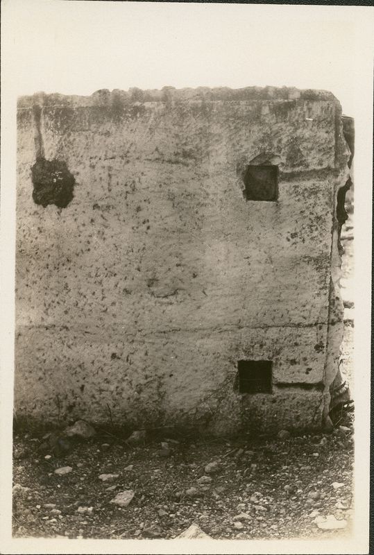 : "Delphi, blocks showing dowel holes and porous channels 573, "On the back ""573""""