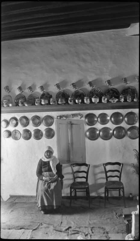 : "Woman sitting inside a house"