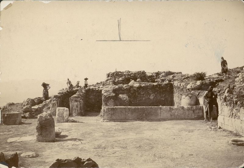 : "Harriet Boyd Hanies Excavating palace Gournia Near view D14 2951, "On the back ""2951""""