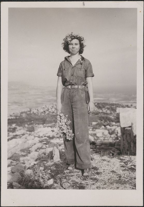 Title: "Corinth Excavations. Mary Folse with flowers"