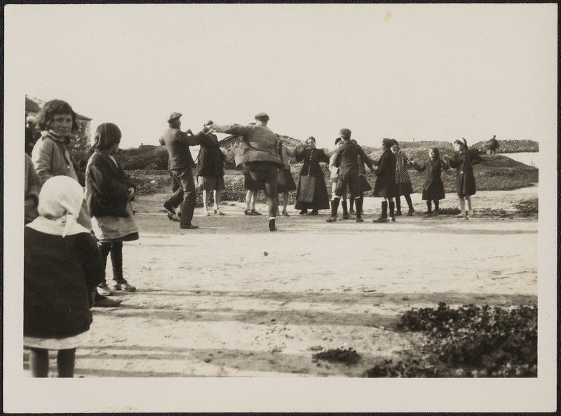 : "Easter Sunday at myriophyto - dancing in the village square april 1931, Written on back"