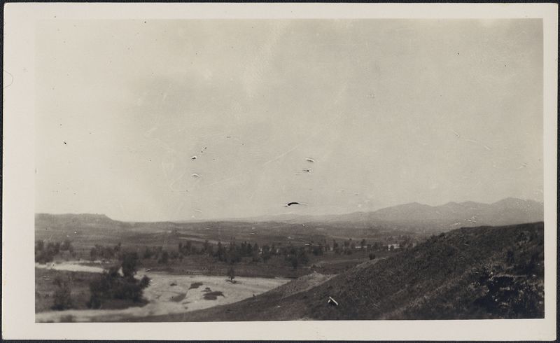 : "Hills of Polygyros, the river and part of Olynthus, taken from the Meghali Toumba April 28, 1931, Written on back"