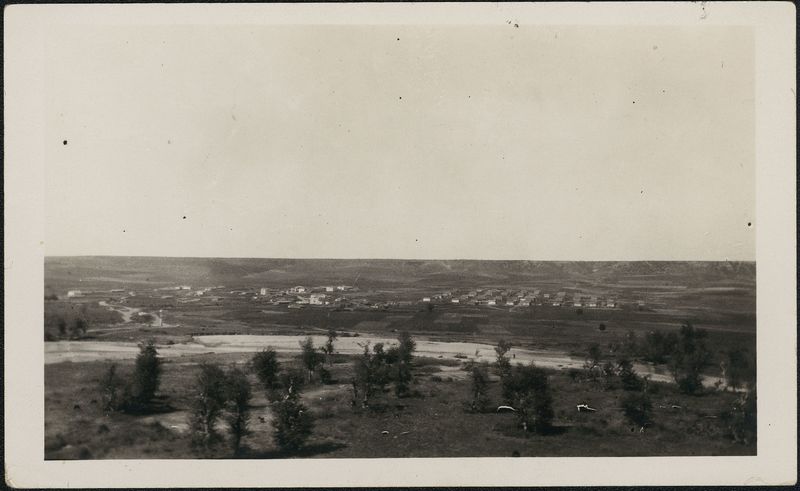 : "Olynthus Excavations. Myriophyto - Retsinikia river in the foreground from the Meghali Toumba"