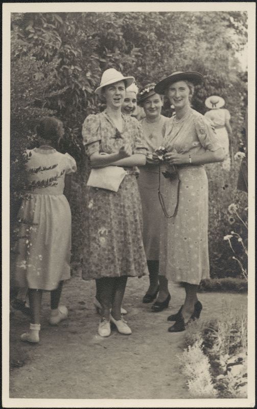 : "L-R Louise Capps, Electra Megan, Miggy Hill Doreen Canaday, Written on back"