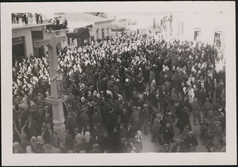 : "Large crowd in town square"