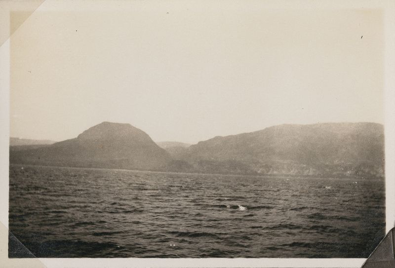 : "Corinthia. Sea view with mountains in distance"