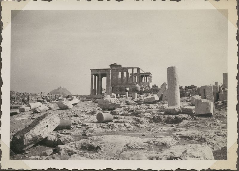 : "Erectheion, seen from South. Lycabettos in distance. ED, "On cardboard. On the back ""ED""""