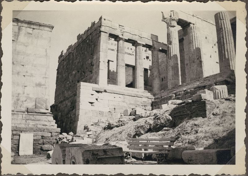 : "Propylaea, SW corner, seen from steps. ED, "On cardboard. On the back ""ED""""