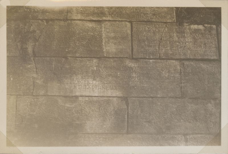 : "Sparta, wall by theatre, showing official inscriptions, On cardboard"
