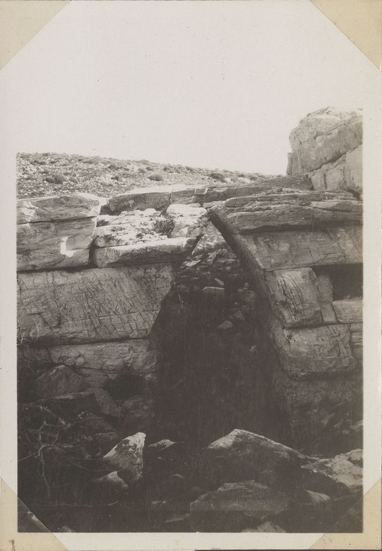 : ""Thoricos ""Tyrinthian"" opening in buttress against cavea retaining wall 14", "On cardboard. On the back ""14""""