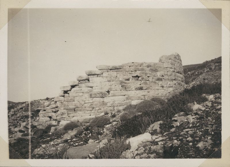 • Description: "Thoricos Theatre retaining wall of cavea from outside 14, "On cardboard. On the back ""14""""