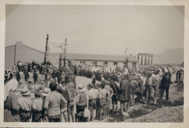 : "Old Corinth. Dedication of museum. People waiting for the festivities to begin"