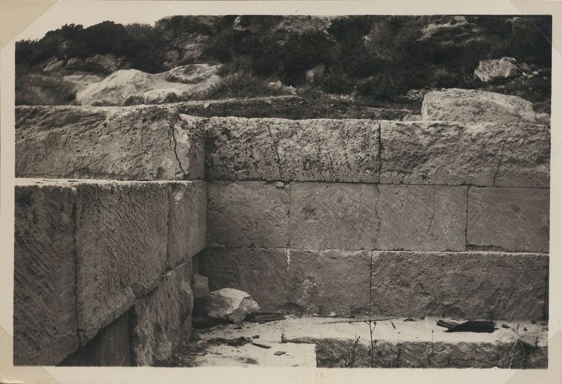 : "Perachora, section of wall off (6 temple. 4/13/33 91, "On cardboard. On the back ""91""""
