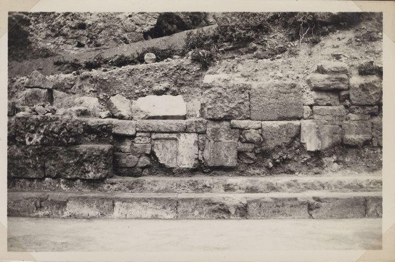 : "Perachora, section of stoa showing re-used blocks 5/13/33 91, "On cardboard. On the back ""91""""
