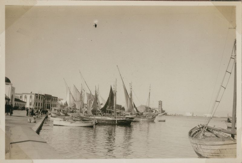 : "Rhodes harbor 12/20/34 3, "On cardboard. On the back ""3""""
