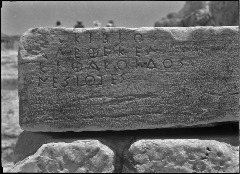 : "Inscribed base on Acropolis near inside Propylaia June 1935"