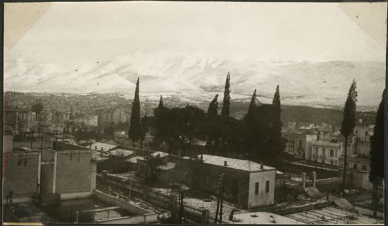 : "Hymettus snow covered, "On cardboard with title""Athens 1936-1937""""