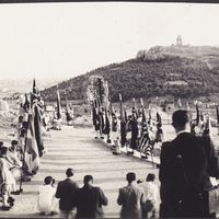 Description: "Reception for King Paul's visit to Acropolis 1936, "On cardboard with title""Reception for King Paul's visit to Acropolis 1936"".4/8/36 Prince Paul?""