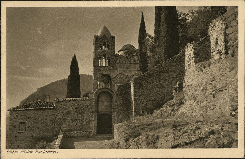 : "MISTRA Grece - Mistra - Pantanassa, "On cardboard with title ""MISTRA"". Postcard""