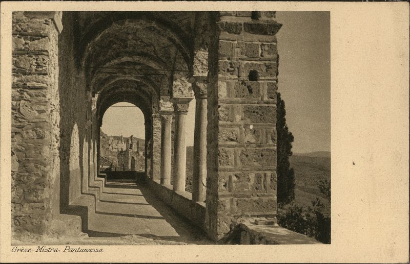 : "MISTRA Grece - Mistra. Pantanassa, "On cardboard with title ""MISTRA"". Postcard""