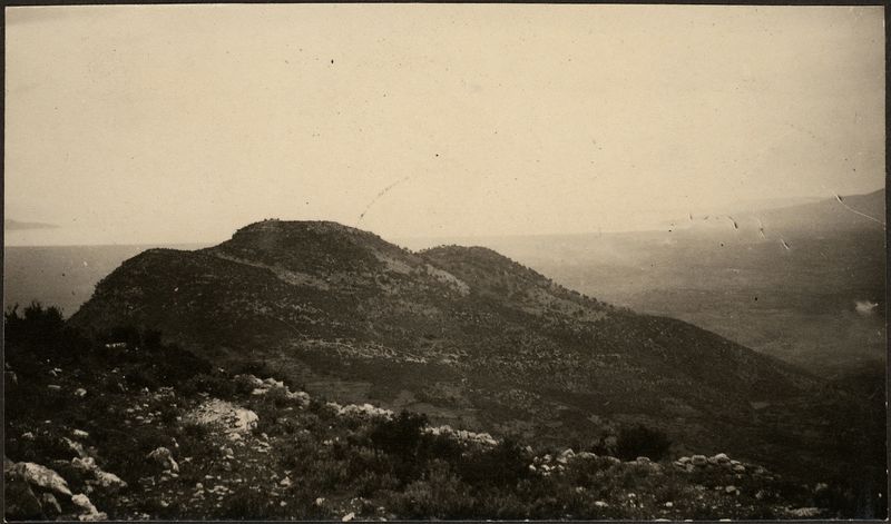 : ""MESSINE fall 1936 ""Little Eva"" and the harbor of Mavromati from Mt. Ithome", "On cardboard with title ""MESSINE fall 1936""""