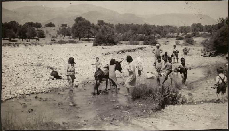 • Description: "CRETE HAGHIA TRIADA 1936, 1937 The approach by water with help from children and donkey, "On cardboard with title ""CRETE HAGHIA TRIADA 1936, 1937""""