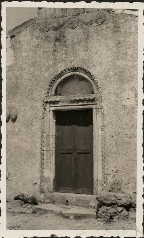 : "CRETE HAGHIA TRIADA 1936, 1937 Doorway of the little Byzantine church, "On cardboard with title ""CRETE HAGHIA TRIADA 1936, 1937""""